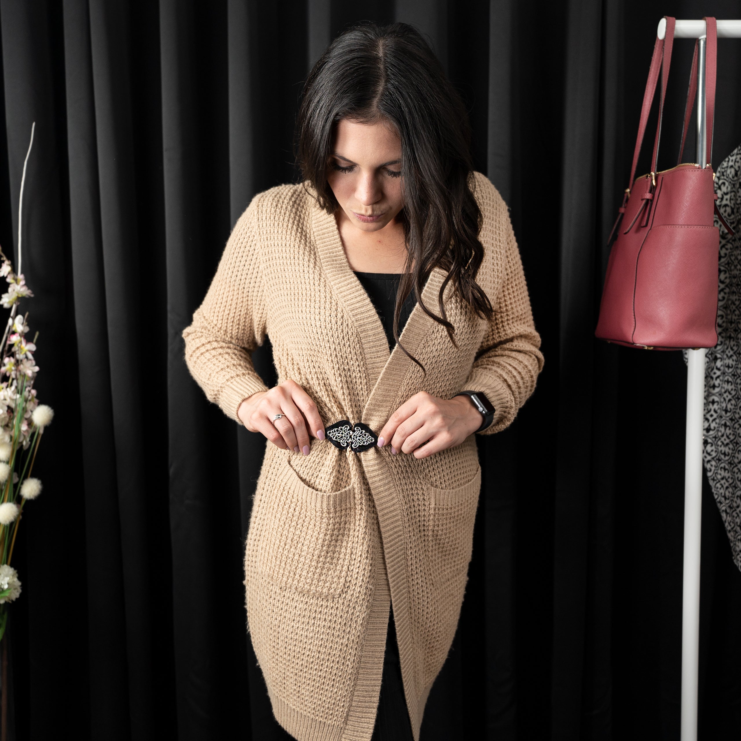 KardiKlips let you bring new life to your existing wardrobe - Ideal for adding shape, definition, and stability to your favorite outfits, they look great on everything from dresses and tunics, to cloaks or cardigans. And thanks to our proprietary grip clips, they offer a fierce hold that won’t be shaken!